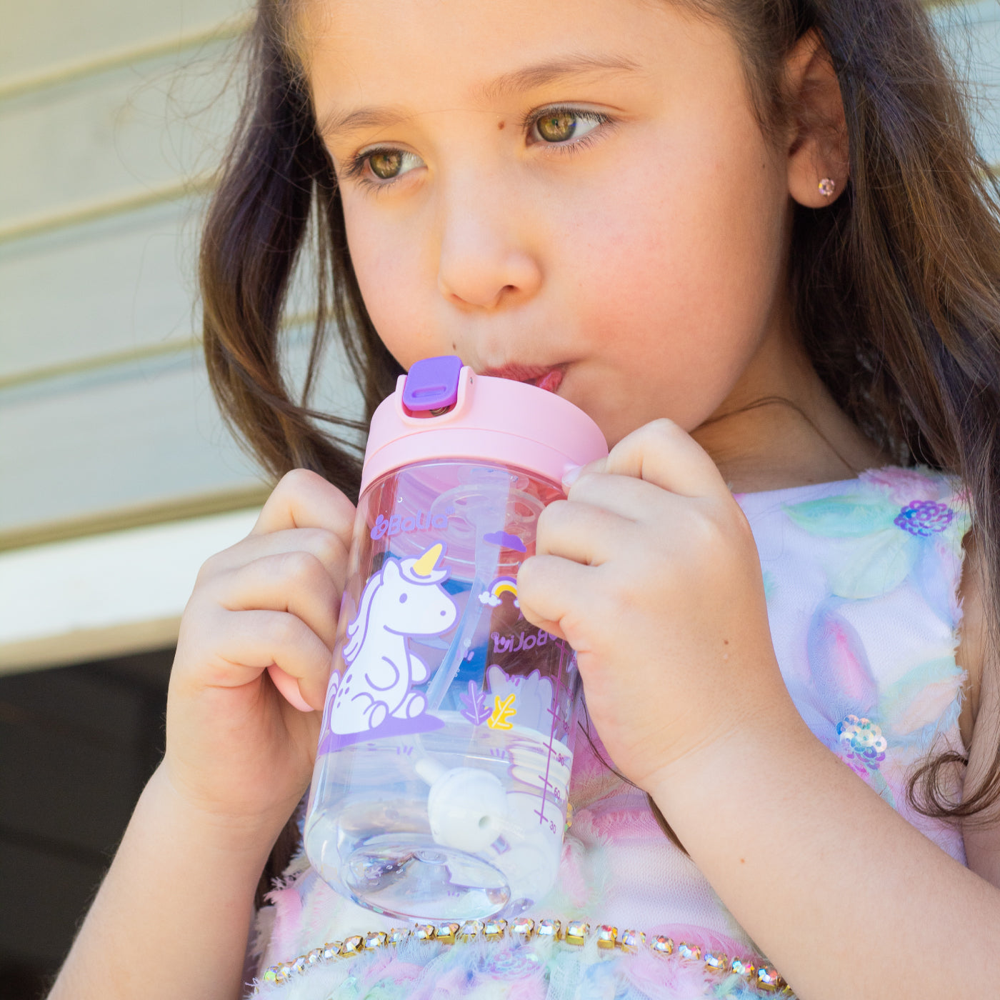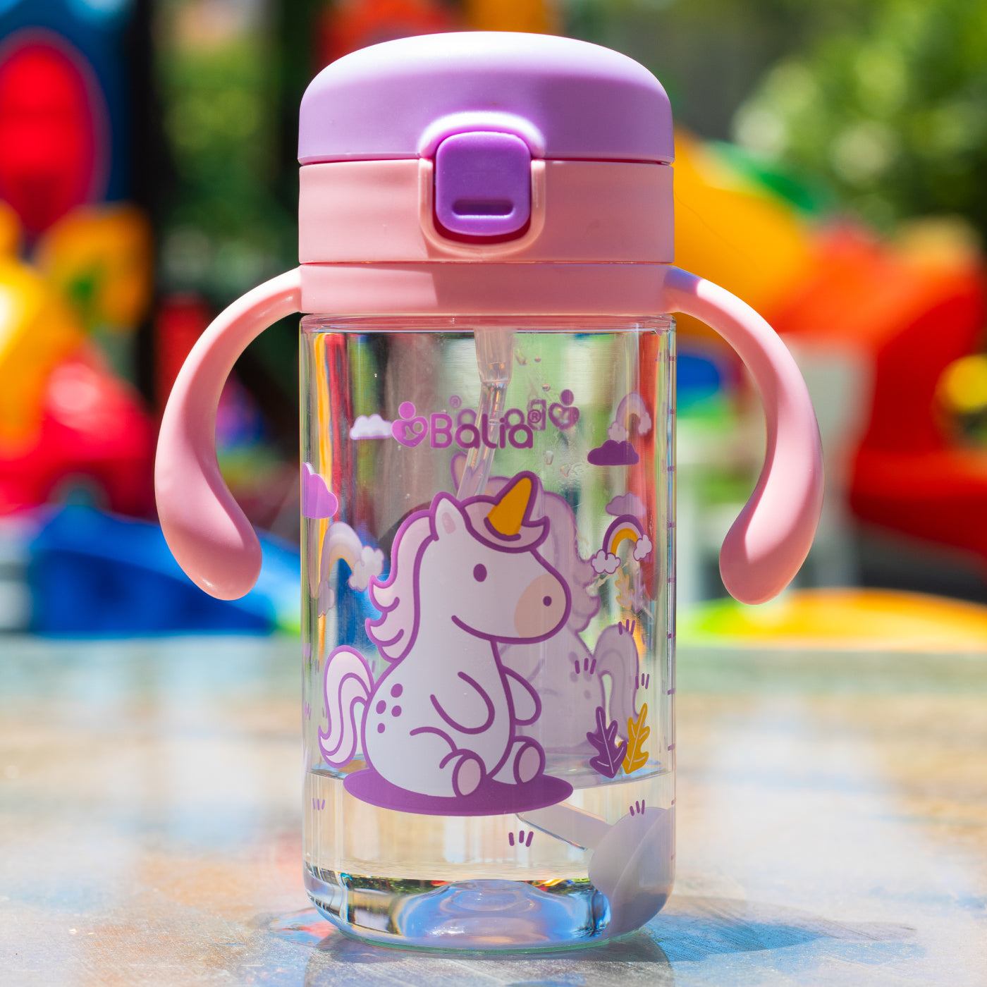 Botella antiderrame con bombilla Unicornio