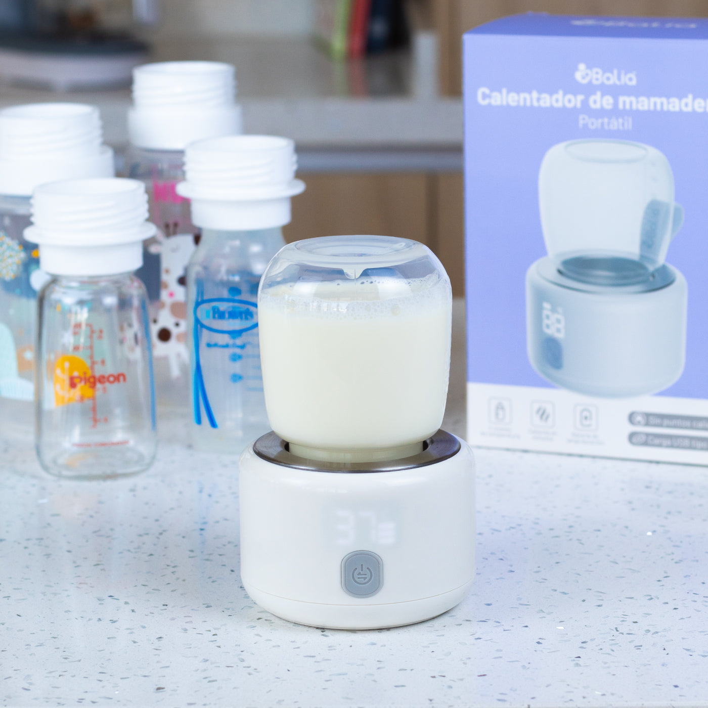 • Temperatura ideal: Con cuatro niveles ajustables, podrás elegir el calor perfecto para la leche, asegurando que siempre esté en el punto justo para tu bebé.
