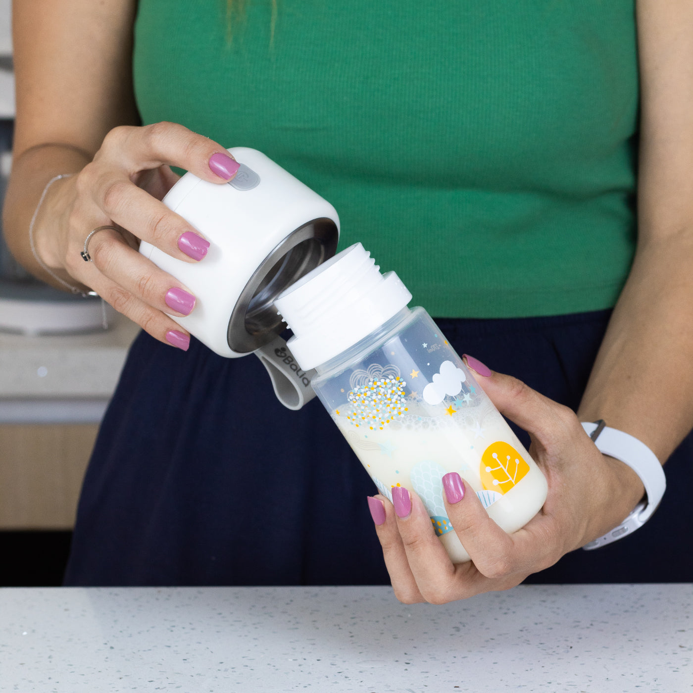 Calienta la leche sin necesidad de agua, garantizando comodidad y seguridad al preservar los nutrientes de la leche para una alimentación óptima.