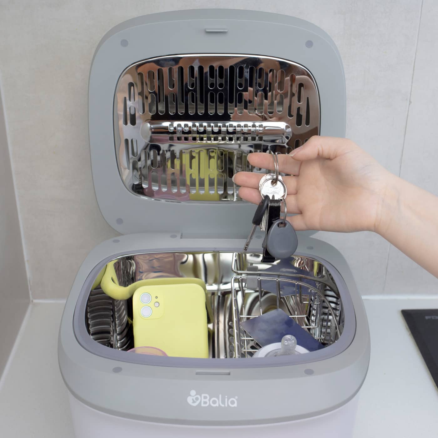 Además de mamaderas, podrás esterilizar otros artículos de bebé o que pueden estar al alcance de tu bebé, como llaves, tarjetas, carteras, juguetes, artículos de belleza y más.